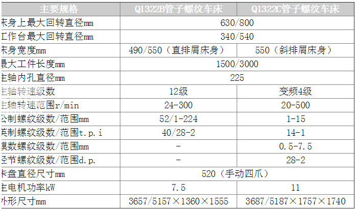 Q1322B/Q1322C型管子螺紋車床是專業(yè)加工管料和棒料的車床,同時具有同等規(guī)格普通車床的功能;車床配置前后卡盤及錐度杠,主軸通孔大,可用于加工各種內(nèi)外螺紋,包括公制、英制、錐度螺紋等,可對軸類、盤類零件進行外圓、內(nèi)孔和端面的加工,采用相應(yīng)的刀具和附件,還可進行鉆孔、擴孔、攻絲和滾花等。