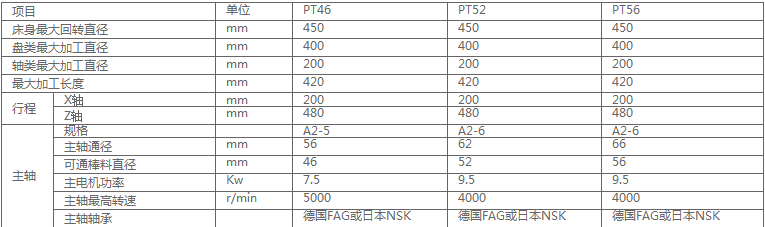 PT46/52/56DW 刀塔式尾座式數(shù)控車(chē)床參數(shù)